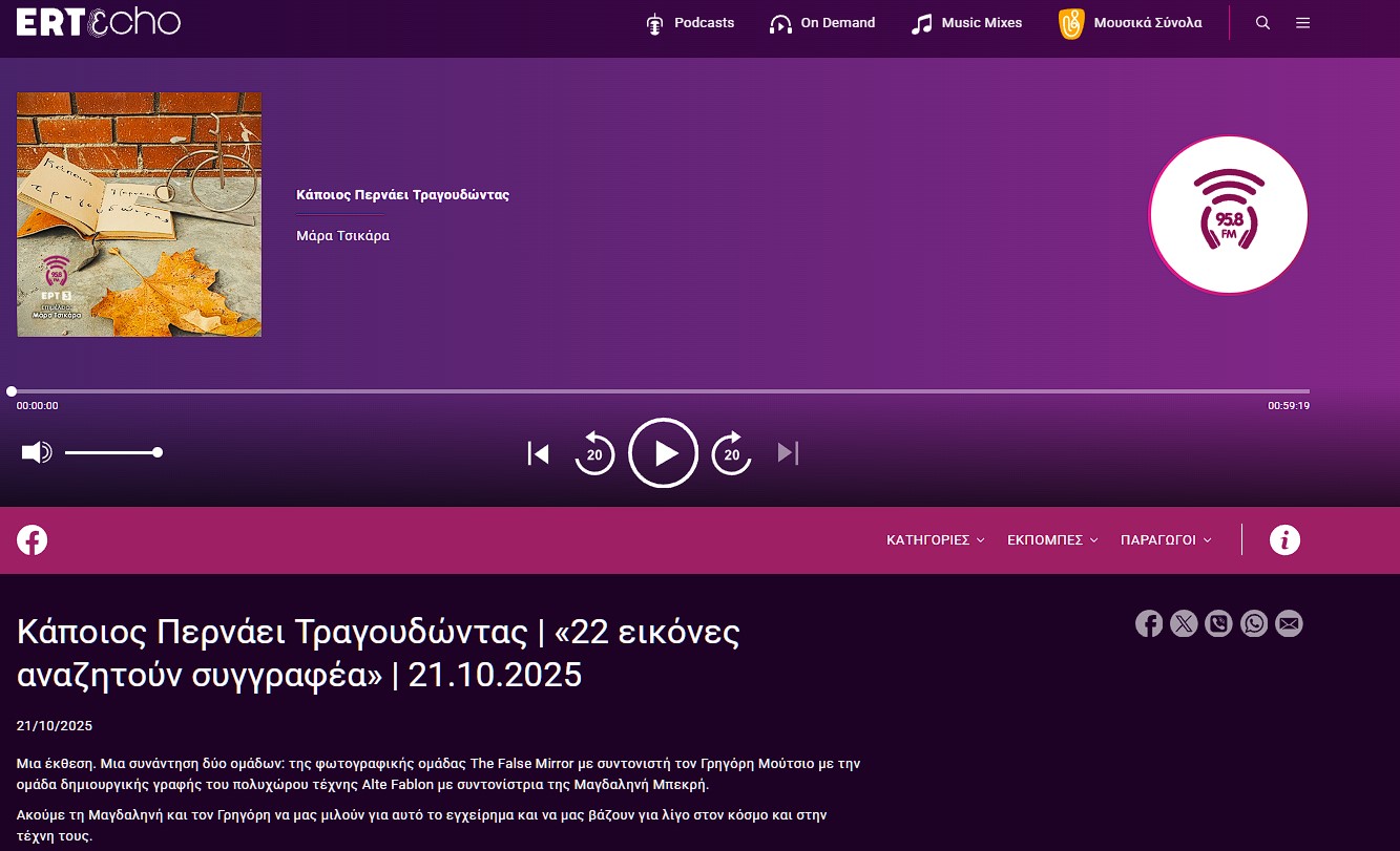 Ακούστε στον 9.58 και στην εκπομπή της Μάρας Τσικάρα "Κάποιος Περνάει Τραγουδώντας", το σχετικό με τη δράση αυτή αφιέρωμα.